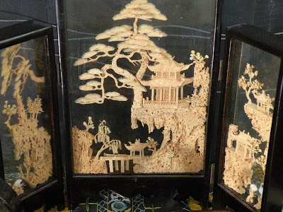 I'm heading down to to my friend Sharon's to make my last payment. I stopped at her fabulous chateau one day, looking around at all her wonderful treasures that filled her home. I spied the most unbelievable collection of Chinese cork art that I've ever seen! It all filled a china hutch. It was so beautiful. I couldn't get it out of my head. Knowing that my girl Sharon doesn't have a problem with parting with things. She'd be a lousy antique dealer if she did. I was reading her blog one day and there it is. She's ready to part with it.